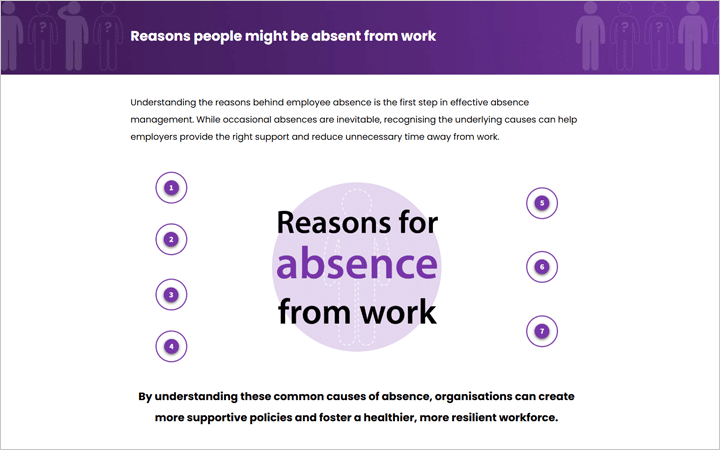 Common causes of absence – covering physical and mental health, bereavement, family responsibilities, childcare, and more.