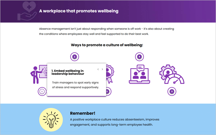 Good absence management starts long before someone goes off sick. By encouraging open communication, signposting to support, and fostering a culture of wellbeing, managers can help employees stay healthy and ensure they return to work supported and ready to thrive.